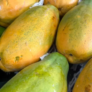 O Mamão Havaí é uma fruta tropical de sabor doce e aroma suave, perfeito para começar o dia com leveza. Rico em nutrientes e com sua textura macia, ele é ideal para consumir in natura, em saladas de frutas ou em sucos refrescantes.